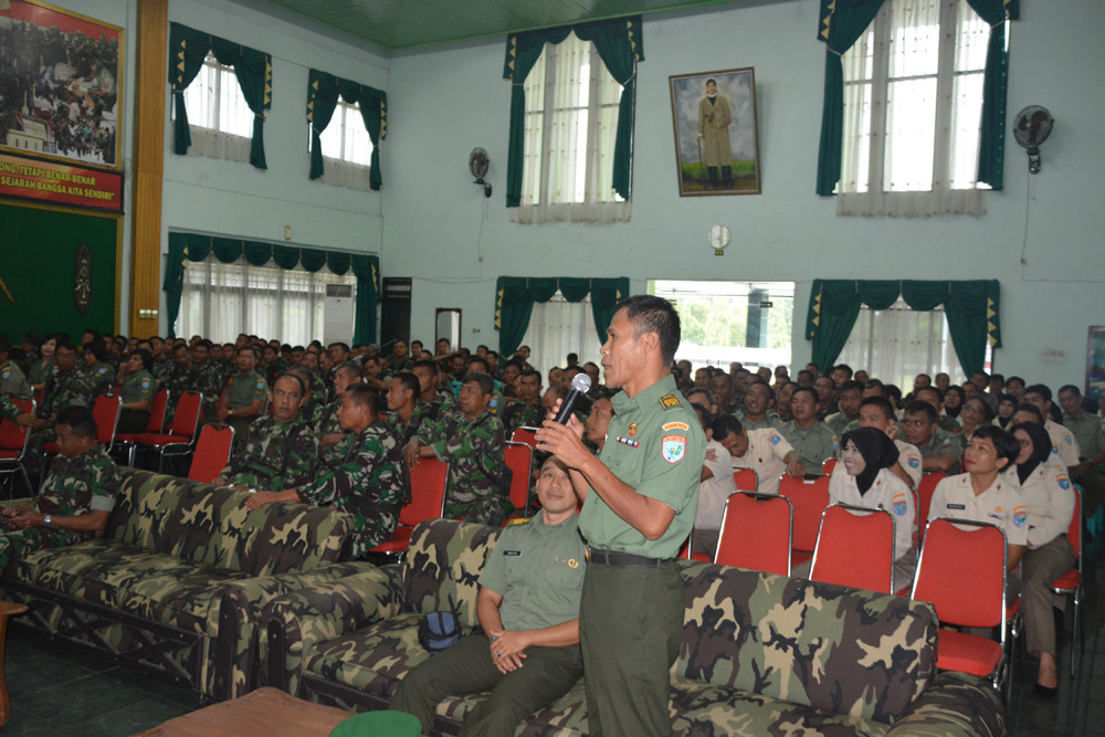 Dalam rangka membangun sikap perilaku yang sehat para prajurit dan ASN Korem 102/Pjg dalam kehidupan keprajuritan di lingkungan Korem 102/Pjg dan jajarannya, Senin (29/2) dilaksanakan kegiatan Penyuluhan Sosialisasi Kanker Indonesia yang bertempat di aula Makorem 102/Pjg, Pukul 07.30 s.d 09.00 Wib . Acara tersebut dihadiri oleh Para Perwira, Bintara, Tamtama serta Aparatur Sipil Negara Jajaran Korem 102/Pjg. Kegiatan Sosialisasi tersebut diisampaikan Dari Yayasan YSKI dengan alamat Jl. Dahlia No.39 Komplek PCPR I Palangka Raya Kalimantan tengah. Pemberi materi oleh saudari Riri Novita, Amd Kep