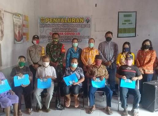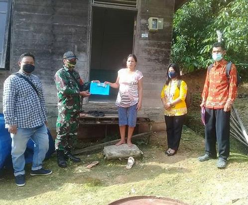 Badan Pembina Desa (Babinsa) Koramil 1016-03/Sepang, Serda Pransiska bersama Bhabinkamtibmas mendampingi warga dalam kegiatan penyaluran Bantuan Langsung Tunai Dana Desa (BLT-DD), di Desa Tuyun, Kecamatan Mihing Raya, Kabupaten Gunung Mas.