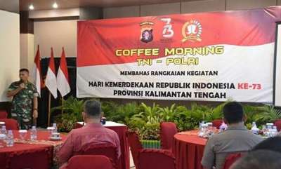 Dalam rangka menyambut hari kemerdekaan ke-73 RI tahun 2018 di Kalteng, Korem 102/Pjg, Polda Kalteng dan pemerintah provinsi Kalteng menggelar coffe morning dirangkai rapat koordinasi di ruang loby Mapolda Kalteng pada (31/07). Dalam rapat koordinasi tersebut dihadiri Kapolda Kalteng, Danrem 102/Pjg, unsur pemerintah provinsi Kalteng, KONI, Wakapolda, para PJU Polda Kalteng, para kasi Korem 102/Pjg, para koordinator perlombaan. Acara diawali dengan doa dilanjutkan paparan panitia yang disampaikan Kasiren Korem 102/Pjg, diskusi yang dipandu Kasiopsrem 102/Pjg.