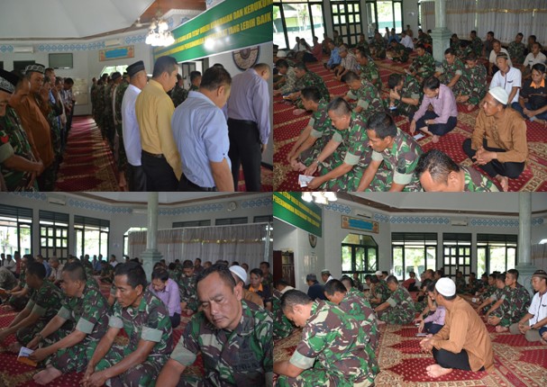 KOREM 102/PJG LAKSANAKAN SHOLAT BERJAMA’AH, PEMBACAAN SURAT YASIN DILANJUTKAN DENGAN DOA BERSAMA