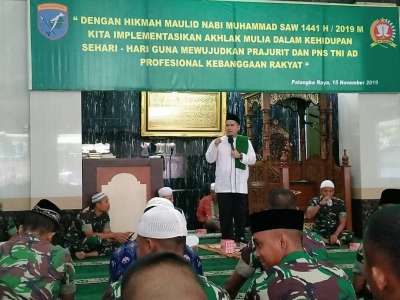 Palangka Raya – Kelahiran manusia mulia, Muhammad Rasululloh, SAW, menjadi momen istimewa dan diperingati umat Islam setiap tahunnya. Hal itu juga dilaksanakan Korem 102/Pjg, bertempat di Masjid Baitul Khaliq Korem 102/Pjg, Jl imam Bonjol,