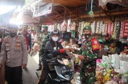 Kodim 1013/Mtw bersama unsur pentahelix menggelar pembagian masker secara massif di beberapa titik keramaian di kota Muara Teweh pada Minggu (31/01).