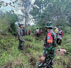 Anggota Babinsa Koramil 1015-09/Bmg yang dipimpin Serda vebby. A. Kegiatan Karya Bhakti Perintisan Jalan dari Kel. Tanah Mas menuju desa Tinduk, Minggu (31/01) pada pukul 08.00 WIB