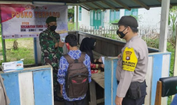 Babinsa Koramil 03/Teweh Tengah mengimplementasikan Pemberlakuan Pembatasan Kegiatan Masyarakat (PPKM) mikro posko terpadu di Desa Lemo I dan Lemo II dan penegakan protokol kesehatan dengan membagikan masker kepada masyarakat, pada Kamis (18/02/21).