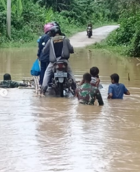 Meluapnya Sungai Montalat Memutuskan Akses Jalan Antar Desa