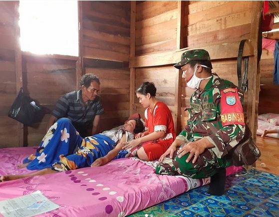 Palangka Raya – Babinsa Koramil 01/Pahandut Kodim 1016/Palangka Raya Serka Dasril menyempatkan waktunya guna menjenguk warga binaanya, Ibu Sarkiah (49) warga jalan antasan tuan RT. 01 RW. 02 Kelurahan Pahandut Sebrang, yang sedang mengalami sakit dan hampir 3 minggu terbaring di tempat tidur karena keterbatasan biaya untuk berobat dirumah sakit, Selasa siang (27/4/2021).