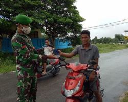 Dalam Rangka Menyambut hari Juang Kartika, Koramil 03/Kolam Kembali Bagikan Masker Gratis.