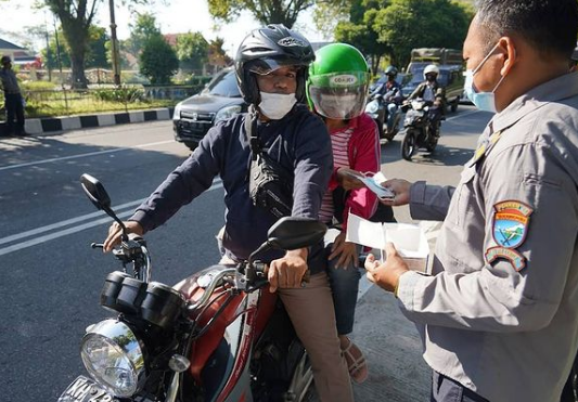Palangkaraya- Anggota Korem 102/Pjg lakukan pembagian masker dilampu merah perempatan jln G Obos jln M H Thamrin kota Palangka Raya Kalimantan Tengah, Jumat 04/06/2021