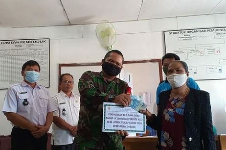 Babinsa Koramil 1016-04/Tumbang Talaken, Serda Yendisfirie bersama Bhabinkamtibmas Polsek Manuning Briptu Rizal mendampingi sekaligus membantu kelancaran penyaluran Bantuan Langsung Tunai (BLT) Dana Desa (DD) Tahap IX periode 3 di Balai Desa Luwuk Tukau, Kecamatan Manuhing Raya, Kabupaten Gunung Mas pada Rabu (16/12/2020).