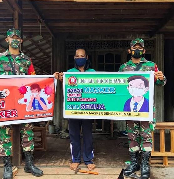 Dan Ramil 1013-01/Kandui Kapten Kav Sarna mengatakan,”Pencegahan penyebaran Covid-19 dengan memperkuat komunikasi publik tentang Protokol Kesehatan skala mikro. Karena satuan terkecilnya lewat RT, maka gerakan Door to Door untuk menjelaskan Protokol Kesehatan ini sangat diperlukan. Posko juga berperan aktif dalam melakukan sosialisasi Protokol Kesehatan, serta memiliki peranan dalam melakukan tracking (pelacakan) dan tracing (penelusuran),” ujarnya.