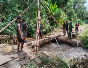 Satuan Tugas (Satgas) TMMD Ke-124 wilayah Kodim 1012/Buntik melaksanakan pembangunan jembatan yang menghubungkan Desa Danau Ganting dan Desa Talio, Kecamatan Karau Kuala, Kabupaten Barito Selatan, Pada hari Jumat (09/05/2025)