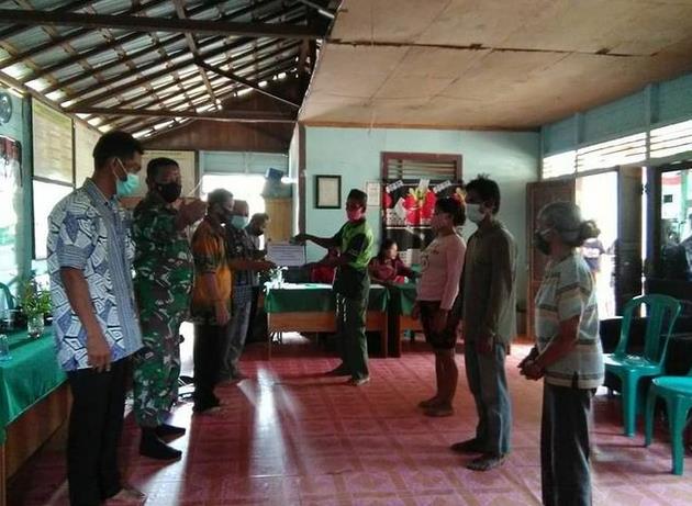 Babinsa Desa Putat Durei Sertu Iwan Setiawan Koramil 1016-04/Tumbang Talaken Kodim 1016/Palangka Raya secara rutin dan berkesinambungan melaksanakan Komunikasi Sosial (Komsos) dengan aparatur desa setempat serta masyarakat di wilayah binaanya, salah satunya dengan turut serta mengawal jalannya penyaluran BLT DD Tahap IX Ds. Putat Durei Kec. Manuhing Raya, Kab. Gumas, Jumat (18/12/2020).