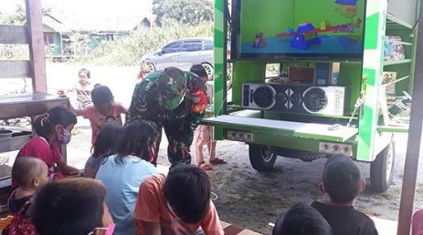 Dipimpin Pelda Nurkholis Babinsa Petuk Katimpun bersama anggota Kodim 1016/Plk lainnya yang berperan sebagai pengemudi dan penjaga perpustakaan ini mengunjungi wilayah Kelurahan Katimpun tepatnya di daerah bantaran sungai di wilayah katimpun bawah. Sabtu (26/09/2020)