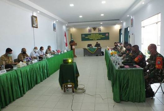 Kotawaringin Barat – Tim Asistensi Teknis (Asnis) Pusat Teritorial Angkatan Darat (Pusterad) kunjungan kerja ke Kodim 1014 /Pbn dalam rangka Asitensi Teknis Penyelenggaraan RTRW (Tata Ruang Wilayah pertahanan darat) Tahun 2021 yang di laksanakan di Ruang Aula Palapa Kodim 1014 /Pbn, Selasa (06/07/2021).